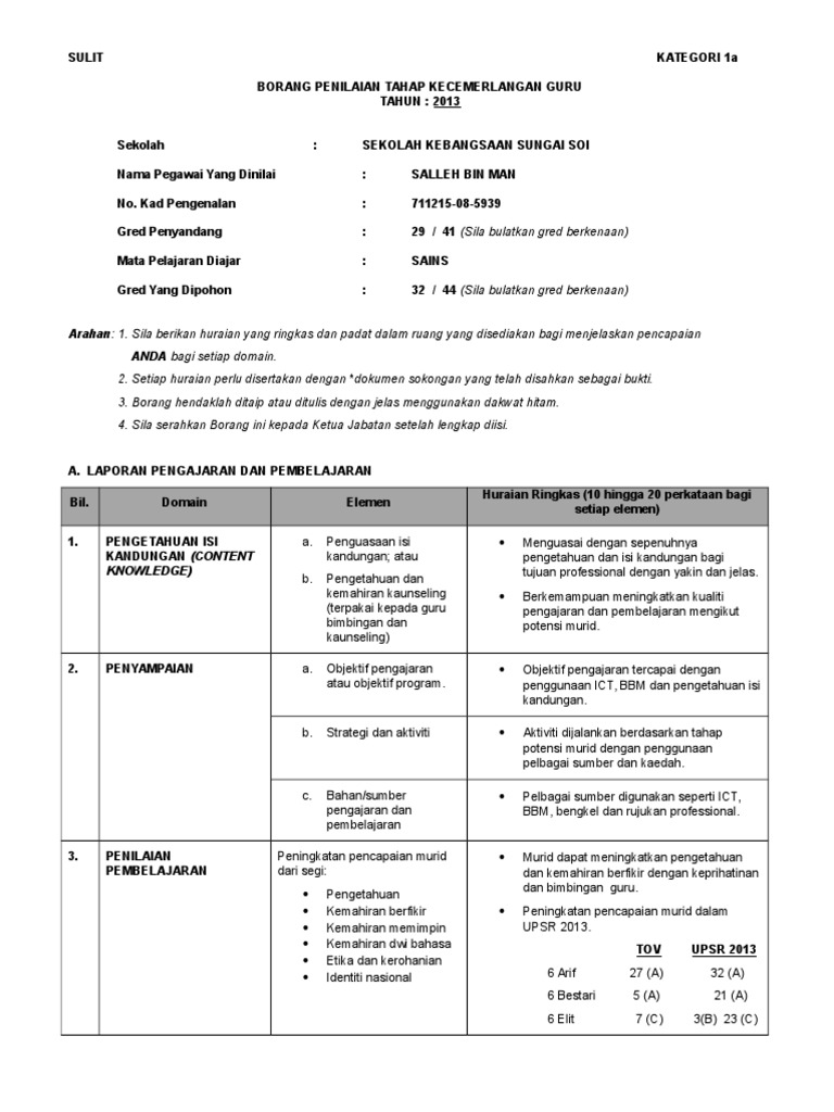 Contoh Pengisian Borang Penilaian Tahap Kecemerlangan Guru Kategori 1b Almackw